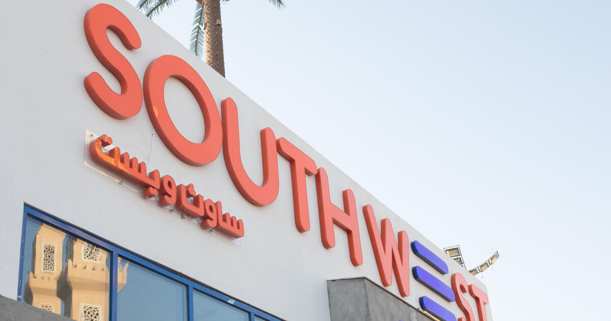 شريحتين من لحم البلاك أنجوس ، شريحتين جبنة أمريكية ، طماطم ، خس ، ساوث ويست صوص